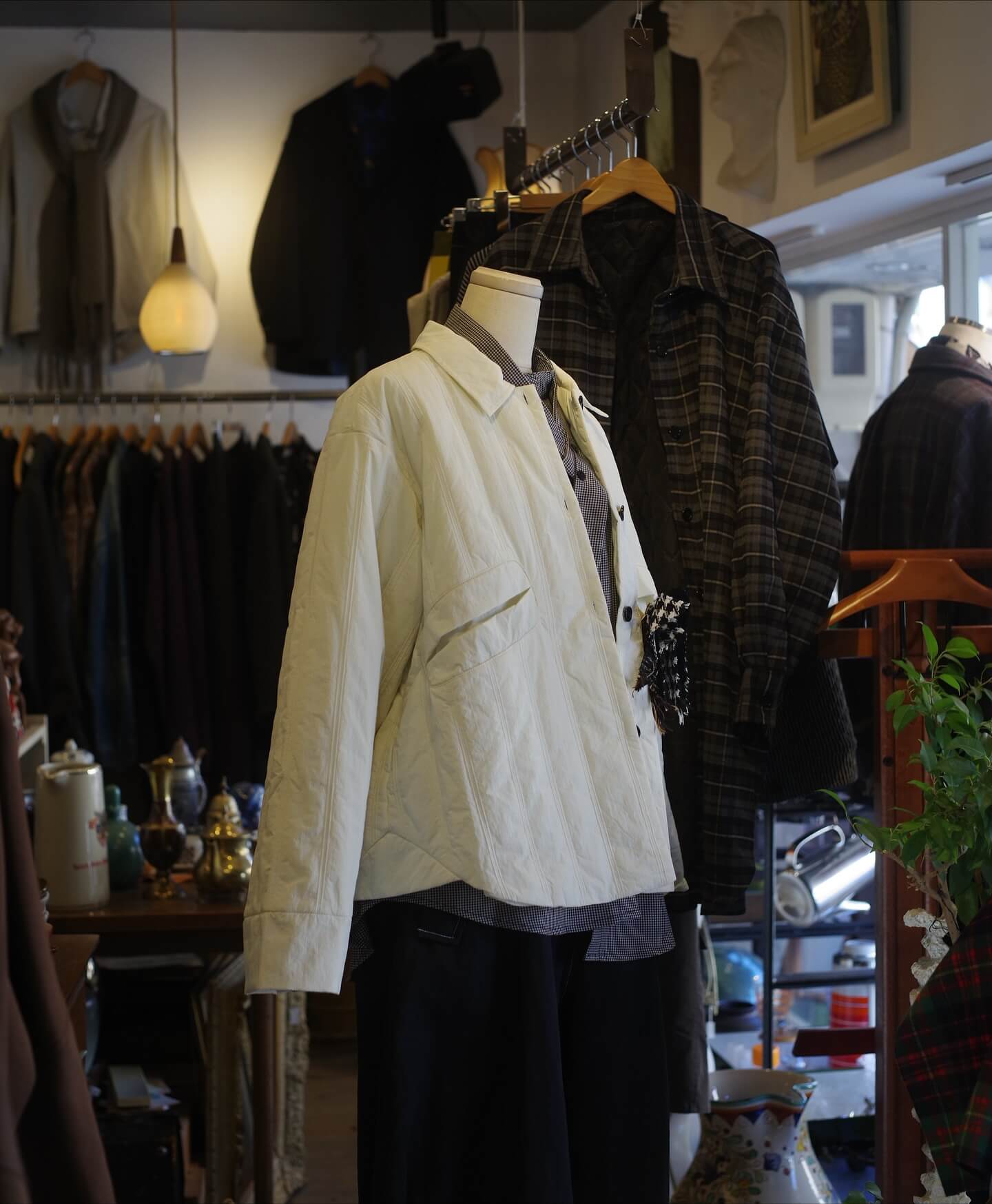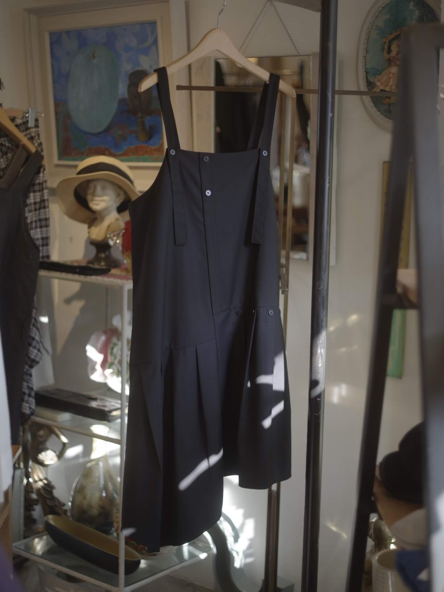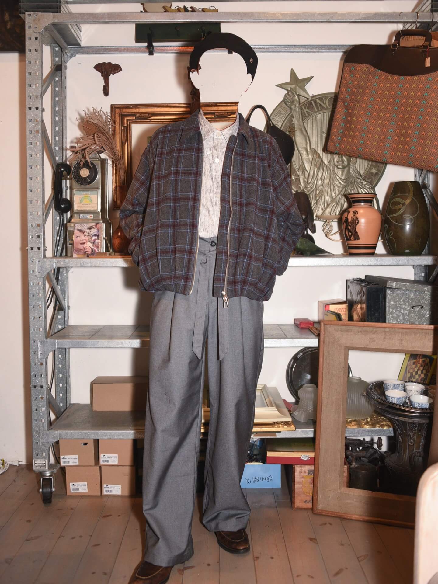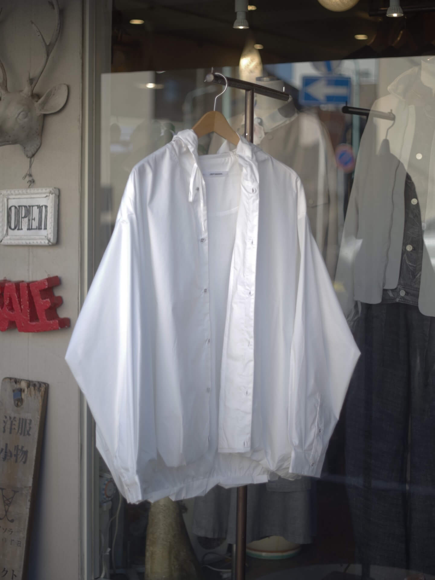 たとえば商品を展示するディスプレイ棚やハンガーラックなど、購入したものが大半ですが、ただ、なかにはご近所の方にゆずって頂いた物や、拾ってきた物もあります(笑)もちろん許可は頂いてますよ!